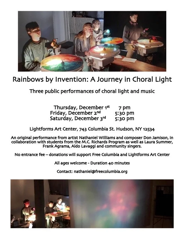 Rainbows by Invention: A Journey in Choral Light Three public performances of choral light and music