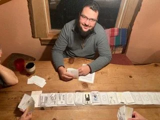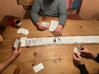 Chriss Roidt has created a card/board game with the images that Laura created for the metamorphosis of fear project. Last Saturday Chriss came and led us through a game.